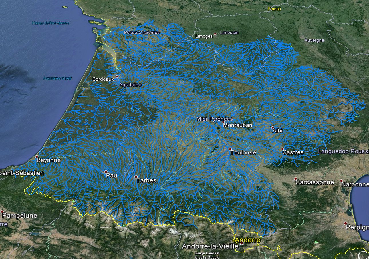 Cette application a été régulièrement améliorée, tant en ce qui concerne le réseau modélisé que les bases de données rejets. En 2011, l’application reprend 40 990 km de rivières (réseau de 2 551 rivières) pour 116 800 km² de bassin versant (bassins versant de l’Adour, de la Garonne, de la Dordogne, de la Charente et de petits bassins côtiers).